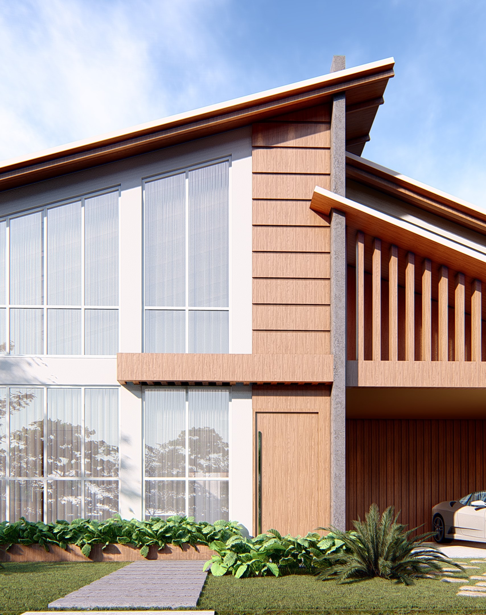 Localizada no Condomínio Grand Forest, esta residência de alto padrão foi finalizada em junho de 2024, após 12 meses de construção. Com detalhes em madeira na parte externa, a obra destaca-se pela sua exclusividade e sofisticação. A casa inclui uma garagem para 2 carros, sala de estar, cozinha integrada com espaço gourmet, sala de jantar, lavanderia, depósito, 2 quartos, banheiro comum, 2 suítes (sendo uma com closet e lavatório), sala mezanino, corredor de circulação e uma jacuzzi externa. Este espaço foi projetado para proporcionar conforto e bem-estar, criando um lar perfeito para desfrutar de momentos especiais com a família e amigos.